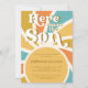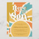 Este alegre convite para chá de fraldas de um rapaz com temática solar apresenta "Aqui Vem O Filho" em tipografia na moda num fundo de explosão solar colorido. Facilmente personalizável.