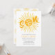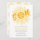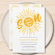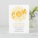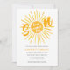 Convide a família e os amigos para o seu chá de fraldas temático com este belo convite para o chá de fraldas dos rapazes. Apresenta o texto "Aqui Vem o Filho" na tipografia da na moda com um sol amarelo de aquarela. As costas estão decoradas com um padrão solar. Facilmente personalizável. Original Watercolor © Michele Davies.