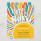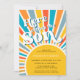 Você está planejando o chá de fraldas de um menino? Este convite colorido para chá de fraldas de um rapaz com temática solar mostra "Aqui Vem O Filho" em retrorgrafia num fundo brilhante de explosão solar. Facilmente personalizável.