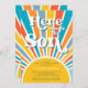 Este convite colorido para chá de fraldas de um rapaz com temática solar mostra "Aqui Vem O Filho" em retrorgrafia num fundo brilhante de explosão solar. Facilmente personalizável.