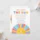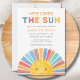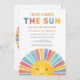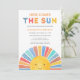 Convide a família e os amigos para o seu chá de fraldas temático com este convite para chás de fraldas ensolarados. Ele apresenta o texto "Aqui Vem O Sol" em tipografia colorida e um sol de aquarela. Facilmente personalizável. Original Watercolor © Michele Davies.