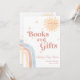Apresentando um sol sorridente e um encantador arco-íris de aquarela, este cartaz de "livros e presentes" dá o tom para um encontro alegre. Personalizado com o nome da futura mãe e a localização do evento, ele adiciona um toque especial ao seu decoro de eventos. Feito com fontes retrô e cores quentes e neutras, exude nostalgia e elegância moderna, perfeita para receber convidados para celebrar a chegada iminente. O vamos torna o seu chá de fraldas realmente memorável com este cartaz personalizado de "livros e presentes", espalhando calor e entusiasmo a todos os presentes! Parte da coleção de chás de fraldas "Aqui Vem o Filho".