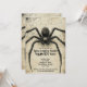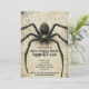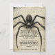 Este convite para o Halloween inclui um design vertical com uma aranha preta de pernas longas e grande posicionada no topo, com as pernas para baixo. As pernas escuras e intrincadas da aranha criam um efeito dramático, ao que parece apontar de cima para baixo. O fundo é uma superfície de cor clara, que proporciona um sutil contraste que melhora a presença sinistra da aranha sem esmagar a design. O espaço para o texto situa-se entre as pernas da aranha no fundo do convite. Essa área é clara e posicionada de forma destacada, garantindo que os detalhes do partido se destacem enquanto mantém o tema estranho definido pela aranha. A legenda no topo diz: "Spine-tingling Spider HALLOWEEN Bash!" em uma fonte ousada e estranha que complementa a aparência ameaçadora da aranha. Abaixo da legenda, há ampla margem para incluir detalhes importantes como data, hora e local da parte. O verso do convite apresenta uma continuação do fundo de cor clara, fornecendo espaço adicional para detalhes de RSVP ou quaisquer notas adicionais. Esse design combina a presença inquietante da aranha com um pano de fundo limpo e leve, criando um contraste impressionante que faz o convite assustador e na moda.