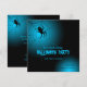 convite de festas de Dia de as Bruxas engraçado de 5,25" x5,25" com uma aranha preta na teia. O texto pode ser facilmente alterado de acordo com as suas necessidades.