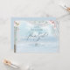 CONVITE DE PROPOSTA PARA CORTEJO NUPCIAL | Olhando para o oceano - O topo deste elegante caramanchão de praia à beira-mar feito de drapeado de tule puro decorado com flores e videiras de magnólia cor de rosa pálido colocado em uma praia arenosa com ondas de água branca. Atrás, um belo céu azul com nuvens fofas. Obra de arte original criada para a BarefootBride™ por © WhimsicalArtwork™ - Esta é parte de uma Suíte Completa de Papelaria de Casamento com papelaria de casamento, chá de bebê e outros eventos correspondentes.