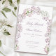 Celebrar uma mãe especial com este charmoso convite para chás de fraldas florais, com delicadas flores doces de ervilhas em tons suaves de rosa, lavanda e branco em forma de arco. A borda floral cria um olhar romântico e inspirado no jardim, enquanto o arco acrescenta um toque único e memorável. Perfeito para um brunch ou chá de fraldas de bebê este convite combina elegância com uma nova sensação de primavera. Uma maneira doce de reunir amigos e familiares em homenagem à chegada.