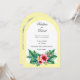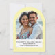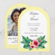 Um belamente elegante arco moldou convite para algo um pouco diferente, com um toque de tropical. Isso seria perfeito para um casamento de temas tropicais ou um destino insular. Ele está disponível em algumas cores diferentes e há itens coordenadores para um evento de casamento temático inteiro. Todos os textos podem ser personalizados e você pode adicionar seu próprio retrato pessoal.