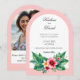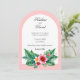 Um belamente elegante arco moldou convite para algo um pouco diferente, com um toque de tropical. Isso seria perfeito para um casamento de temas tropicais ou um destino insular. Ele está disponível em algumas cores diferentes e há itens coordenadores para um evento de casamento temático inteiro. Todos os textos podem ser personalizados e você pode adicionar seu próprio retrato pessoal.