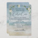 Rede náutica com design de arco floral azul e marfim e estrelas-do-mar sobre fundo oceânico de cor aquática.