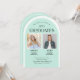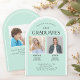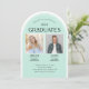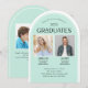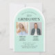 Este convite de graduação superior em arco de classe apresenta um design especificamente para dois formandos. O convite é perfeito para irmão e irmã, gêmeos ou amigos. O verso fornece espaço para uma foto horizontal adicional e texto extra.