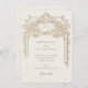 Este convite de casamento, inspirado em antiguidades, mostra um elegante fundo de marfim adornada com detalhes florais e arquitetônicos intrincados em tons de sépia. A frente da carta apresenta um belo ornamentado, enquadrando os detalhes do casamento com a sofisticação clássica. A combinação da serifa refinada com os delicados sotaques florais cria um eterno, a estética da safra. A parte de trás do cartão continua o tema luxuoso com uma urna finamente esboçada, repleta de flores, acrescentando um toque pessoal e elegante. Este convite é perfeito para um casamento formal, inspirado na vintagem, que oferece uma mistura de encanto tradicional e luxo subestimado.