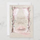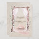 Este elegante convite de casamento apresenta um tema de cor floral boho. Um arco feito de madeira é fotografado no centro com um pôr do sol passando. A arca é formada por galhos e folhas e cortada com uma cortina rosa fluente. O fundo é um design de papel pergaminho desbotado, que dá um charme quente e rústico.