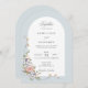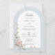 Esta design romântica e elegante apresenta rosas pastéis macios e flores silvestres em tons de rosa-pincel, branco, violeta pálido e ouro sobre fundo verde-menta claro com forma de arco branco. Este design também inclui gráficos de texto fluindo em uma fonte de caligrafia personalizada. A cor de fundo também é personalizável.