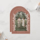Este é um elegante cartão de ponto em forma de arco, com um esquema romântico de cor marrom-terracota muted earthy. A design exibe uma foto personalizável de um casal engajado posicionado no centro, cercado por delicados galhos florais brancos e pequenos florais que criam uma bela borda ao redor da imagem. A estética geral é macia, romântica e sofisticada, com os elementos florais acrescentando um toque caprichoso ao design clássico de arco, perfeito para um casamento de primavera ou jardim.