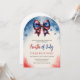 Este design apresenta a festa de comemoração de 4 de julho com a faixa de arco inspirada na bandeira dos EUA, fundo vermelho branco e azul de cor d'água. Perfeito para festas de CHURRASCO patrióticas. Personalize-o com seus detalhes de evento para torná-lo completamente seu!