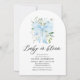 Celebre seu filho com este charmoso convite em forma de arco! Com delicadas flores azuis, um arco doce, e um elegante design moderno, é perfeito para um chá de fraldas sofisticado e na moda. 🌸 🍼 💙 o tom para uma bela celebração com este eterno e um convite adorável! ✨ 🎀