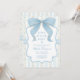 Celebre em estilo com este convite de chá de fraldas azul-floral vintage, perfeito para um eterno e elegante encontro. Projetado com um arco azul de pó, de tamanho superior, pintado à mão, delicadas faixas de papel de parede de rosa de escalada, e sofisticados acentos de rendas, este convite expele encantos românticos de cottagecore com uma estética coqueteira moderna. Ideal para chás de bebês/meninas, festas de chá ou eventos temáticos de jardim, este design capta a essência da elegância do chique. Impresso no estoque de papelão premium, é um convite digno de manutenção que dá o tom para uma celebração sonhenta e abraçada pelo pastel.