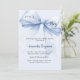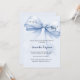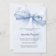 Um fundo azul claro e macio, decorado com um grande arco azul. Personalize e adicione um nome e detalhes da parte. Texto no arco: É um menino!
