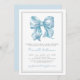 Um tema charmoso de chá de fraldas com um adorável arco azul-d-água. A frente inclui linhas de caligrafia de script manuscritas em uma cor azul suave para corresponder ao arco, em conjunto com um quadro de cinza fino duplo para um toque elegante e tradicional. A parte traseira apresenta uma cor azul clara que complementa o arco na parte frontal. Esse simples e mínimo design oferece um visual clássico de chá de fraldas, com texto de cinza numa mistura de serifa e tipografia de scripts de caligrafia. Celebrar a futura mãe no estilo! Você pode personalizar as cores da fonte e do plano de fundo para se adequar ao seu tema. Perfeito para chás de fraldas do ano inteiro, mas especialmente encantador para uma festa de jardim ou brunch. A decoração é fácil com fitas azuis e arcos, ou você pode incorporar outros temas também. Disponível como convite impresso ou como convite digital para download que pode ser enviado por e-mail ou impresso localmente!