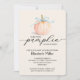 Uma abóbora fofa amarrada com uma fita azul destaca esses convites de marfim macio para chá de fraldas de menino com "Uma abóbora está a caminho" na frente e no registro, rifa de fralda e livros para informações sobre bebês no verso - adicionar, apagar ou mudar facilmente a informação no verso. (Disponível em rosa e marfim, também.) CORRESPONDENTE a itens na nossa coleção.