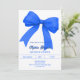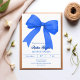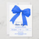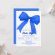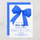 Um fundo branco, decorado com um grande arco azul real. Personalize e adicione um nome e detalhes da parte.