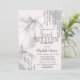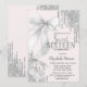 Elegantes gotas de brilho prateado e arco branco em aquarela em um fundo rosa. Personalize o modelo de texto com os detalhes do seu evento. Este convite está disponível em ambos os formatos, impresso e digital para download instantâneo, para sua conveniência.