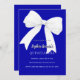 Um fundo azul real colorido, decorado com um grande arco branco. Personalize e adicione um nome e detalhes da parte.