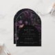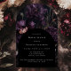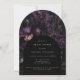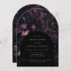 Apaixonem-se por celebrar seu chá de panela gótico ou chá de panela de Halloween com esse chá de panela escuro, gótico e romântico em forma de arco moderno, apresentando um buquê de flores roxas no estilo de mestrados holandeses antigos, escuros e melosos em fundo negro. A parte traseira possui trabalho de arte correspondente. Use a ferramenta design e clique em "personalizar mais" para editar o estilo da fonte, o tamanho do texto e a posição dos gráficos, se desejar.