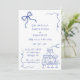 Um convite de casamento com uma torre de champanhe desenhada à mão e um arco. Personalizado com seus nomes e detalhes.