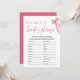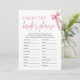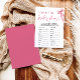 Envolva seus hóspedes em uma atividade divertida e interativa com nosso Jogo de Chá de panela de Frase da Noite. Os hóspedes vão gostar de completar frases ou frases que a noiva normalmente diria, provocando risos e entretenimento. Com o seu design cor-de-rosa encantador, este jogo adiciona um toque encantador ao seu chá de panela enquanto cria momentos memoráveis para a futura noiva e seus convidados. Que a criatividade flua à medida que todos tentam adivinhar os pensamentos e as palavras da noiva!