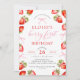 Celebre seu dia especial com este charmoso arco de coquetes chamado "Berry First Birthday" convite! Apresentando um tema delicioso de morango, um roteiro elegante vermelho e sotaques de cor aquosa, este convite é perfeito para uma celebração de aniversário de primavera ou verão.