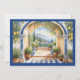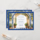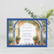 Convite de casamento da Costa Amalfi Itália com vista para o arco mediterrâneo, com azulejos azuis, limão e moldura azul.