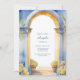 Arco da Costa Amalfitana Itália vista do mar Mediterrâneo para convite de aniversário, com azulejos azuis, limão e moldura azul. Bellissima Italia © Você pode personalizar com seus nomes e texto. Você pode alterar a cor do texto e o estilo da fonte usando a opção personalizar ainda mais. POR FAVOR, NOTE: As cores exibidas online podem variar ligeiramente do produto real.