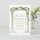 O Cartão de Convite para Casamento Floral Branco Verde de Cana de Casamento Elegante inclui lindas rosas brancas e peões brancos. O arco da copa do casamento da madeira inclui vegetação botânica. Dourado Script.