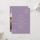 Clássico, elegante e macio monograma floral, foto de arco de casamento roxo com pequenos contornos florais florescentes, adicione seu monograma de casal, com boho roxo um convite clássico de casamento com uma reviravolta moderna, adicione sua foto no verso em forma de arco.