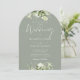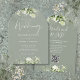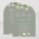 Este convite de casamento floral verde sage botânico moderno com folhas de folhagem pode ser personalizado com suas informações em tipografia elegante com os detalhes do seu site de casamento e seu código QR no verso. Projetado por Thisisnotme