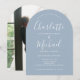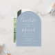 Com nomes de estilo de assinatura, este convite de casamento elegante pode ser personalizado com suas informações em letras elegantes em um fundo azul empoeirado com a foto escolhida no verso. Concebido por Thisisnotme©