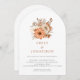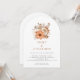 Arco de Casamento do Código QR do outono Moderno Florais. Um buquê de outono em tons de terracota, marrom e creme com bagas e folhagem e tipografia elegante que você pode facilmente personalizar com seus detalhes. Seu código QR no verso será gerado automaticamente para atualizar o código de amostra no design, quando você simplesmente alterar o URL de amostra no modelo com o URL do seu próprio site de casamento.