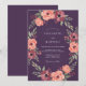 Uma grinalda artística de flores profundas de ameixa e coral adorna este design romântico. A folhagem verde exuberante cria uma borda natural e fluída, evocando um clima caprichoso e etéreo perfeito para uma ocasião especial.