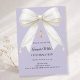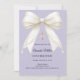 Convide os convidados com este sofisticado convite de Confrmação. O design apresenta um luxuoso laço de cetim marfim adornado com pérolas delicadas e uma cruz dourada brilhante sobre um fundo suave e lavanda discreto. É uma escolha linda para uma jovem que celebra sua Confrmação.