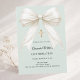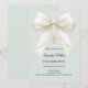 Um fundo verde suave e pálido sage decorado com um grande arco com pérolas e uma cruz dourada. Personalize e adicione um nome e detalhes detalhes.