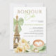 Este elegante convite de chá de fraldas abraça um charmoso tema "bonjour bébé", perfeito para uma celebração inspirada na Parisiense. Apresentando uma torre Eiffel ilustrada de forma elegante com uma fita verde macia, delicados florais de aquarela e um sofisticado cappuccino com macarões, essa design exumenta a elegância e o calor franceses. A combinação de ouro refinado e tipografia verde acrescenta um toque chic e moderno, criando uma estética sofisticada, mas convidativa. Ideal para aqueles que amam todas as coisas parisienses, este convite dá o tom perfeito para um na moda e memorável chá de fraldas cheio de amor, charme e um toque de talento europeu.