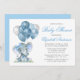 O moderno Elegante Watercolor Baby Elephant com Arco Azul no Ferns Chá de fraldas Invitation inclui balões azuis e prateados com brilho.