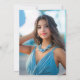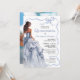 Um convite moderno da Quinceañera que exalta elegância e charme, este design feminino tem uma bela ilustração de um vestido de bola azul como ponto focal. O vestido, feito de camadas delicadas de tule e satin, flui graciosamente, brilhando em lindas matizes azuis. O texto do convite é delimitado por um delicado quadro de fita azul, redimensionado, que adiciona um toque de suavidade e sofisticação. O quadro está intricadamente amarrado em um arco no topo, com caudas que descem em cascata, melhorando a elegância geral do design. No verso do convite há um modelo fotográfico para incluir uma foto da celebrante do aniversário enquanto ela se prepara para celebrar esse marco importante de se mudar para a idade adulta. A estética geral é uma estética de beleza e luxo, criando um sentido de antecipação para a grande comemoração a vir. Este convite pode ser solicitado como convites impressos ou pode ser baixado como um convite digital.