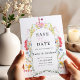 Celebre o seu amor com este romântico cartão de Save the Date de flor selvagem. Com um delicado arco de flores coloridas pintadas à mão, este design é perfeito para casamentos de jardim, celebrações boho ou locais rústicos no campo. Personalize com seus nomes, data e local para criar um anúncio único. Texto editável para fácil personalização, Desenho de arco floral bonito, Ideal para casamentos boho, rústicos ou de jardim