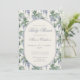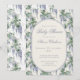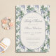 Este convite de chá de bebê elegante apresenta um belo design grandmillennial inspirado em padrões florais atemporais. Delicadas flores de wisteria desabrocham graciosamente em torno da borda em tons suaves de lavanda, azul poeirento e verde sálvia, criando uma paleta de cores refinada e romântica. A moldura oval clássica destaca os detalhes do evento em um layout limpo e equilibrado, misturando tradição com um toque fresco e moderno.