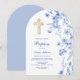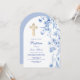 Convite Arco de flores silvestres azuis francês Batismo