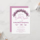 Este convite de chá de noiva simples e elegante apresenta um arco de folhas em tons de roxo sobre um fundo branco. Todos os detalhes estão na frente em cores retiradas das cores das folhas. Personalize os campos de texto, remova qualquer texto e/ou clique em personalizar para selecionar uma cor, tamanho e estilo de fonte que preferir.