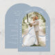 Convite Arco de Foto Azul Empoeirado para Casamento com Le