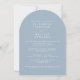 Este convite de casamento com arco de foto azul empoeirado e letra caligráfica pode ser personalizado com suas informações em tipografia moderna. Criado por Thisisnotme©